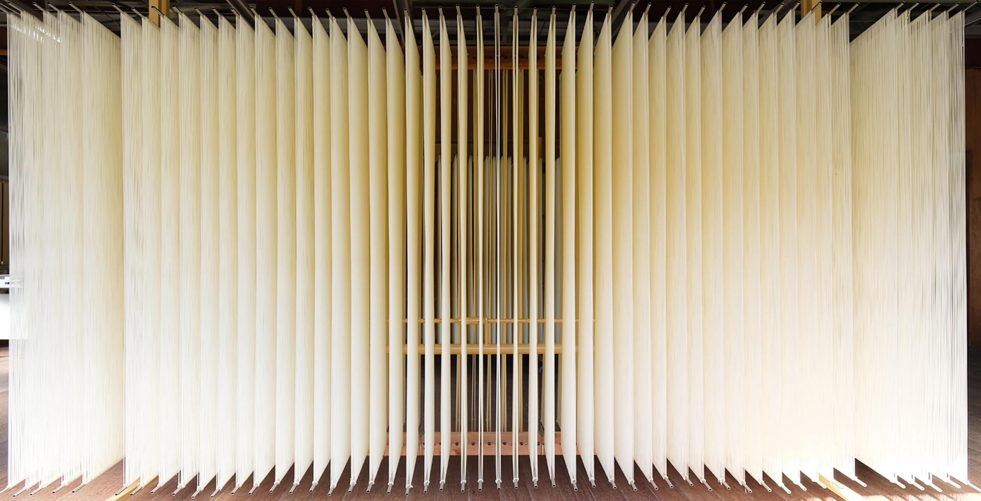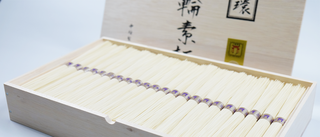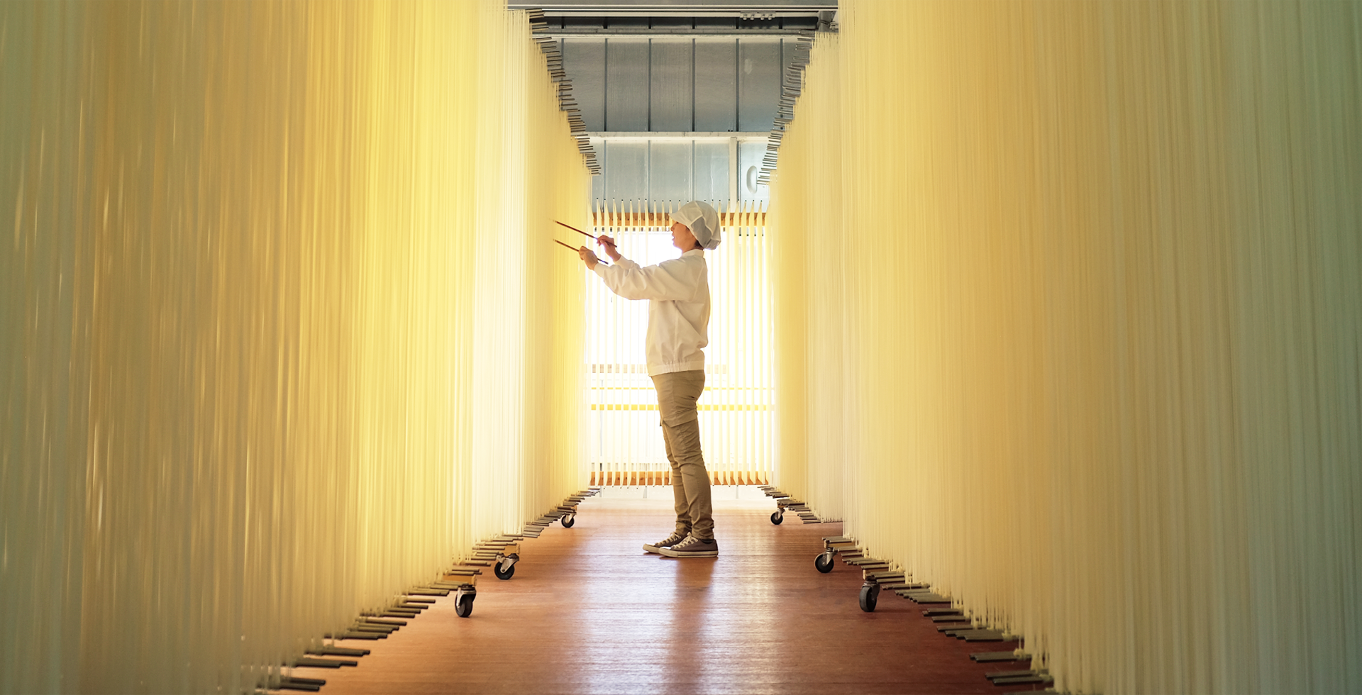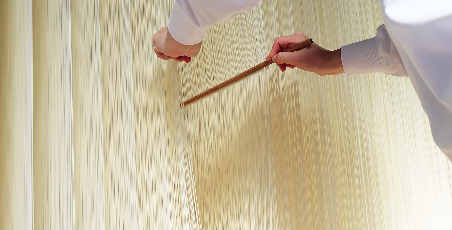 じっくりと時間をかけ、熟成を繰り返しながら伝統の手延べの製法で仕上げています。